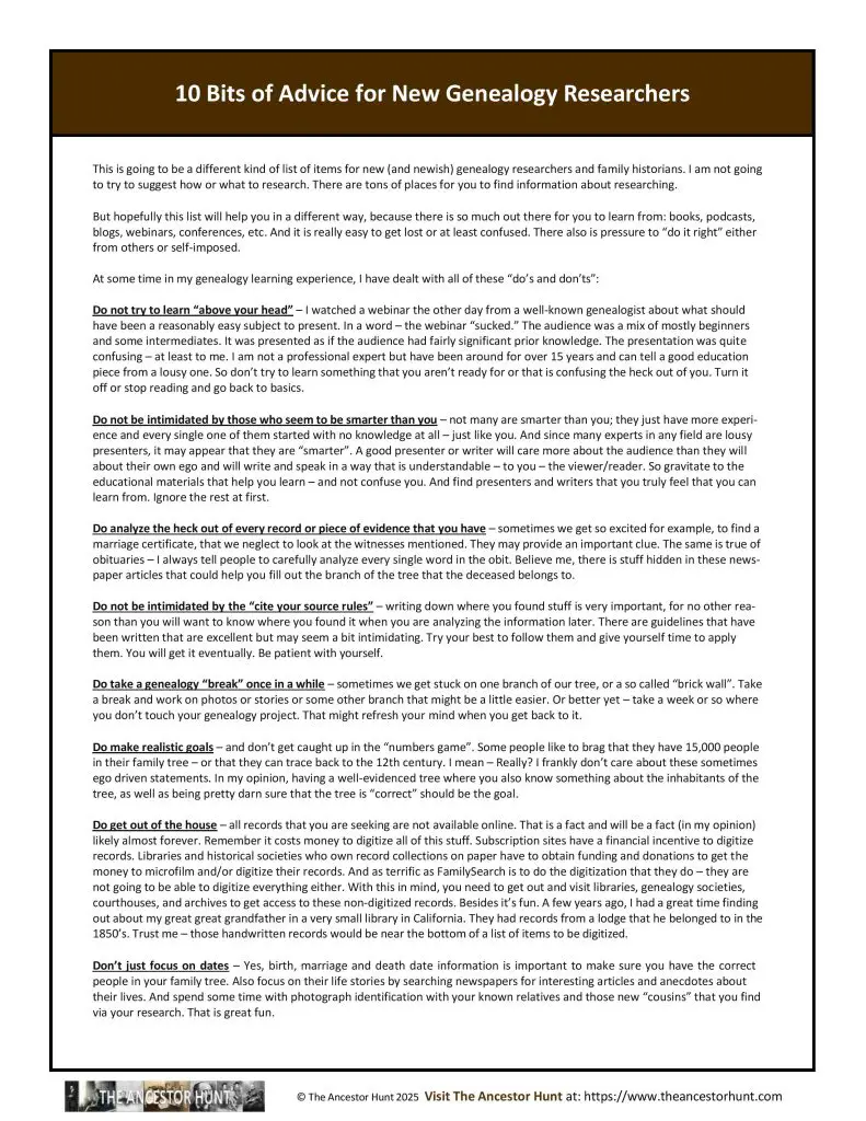 This is going to be a different kind of list of items for new (and newish) genealogy researchers and family historians. I am not going to try to suggest how or what to research. There are tons of places for you to find information about researching.