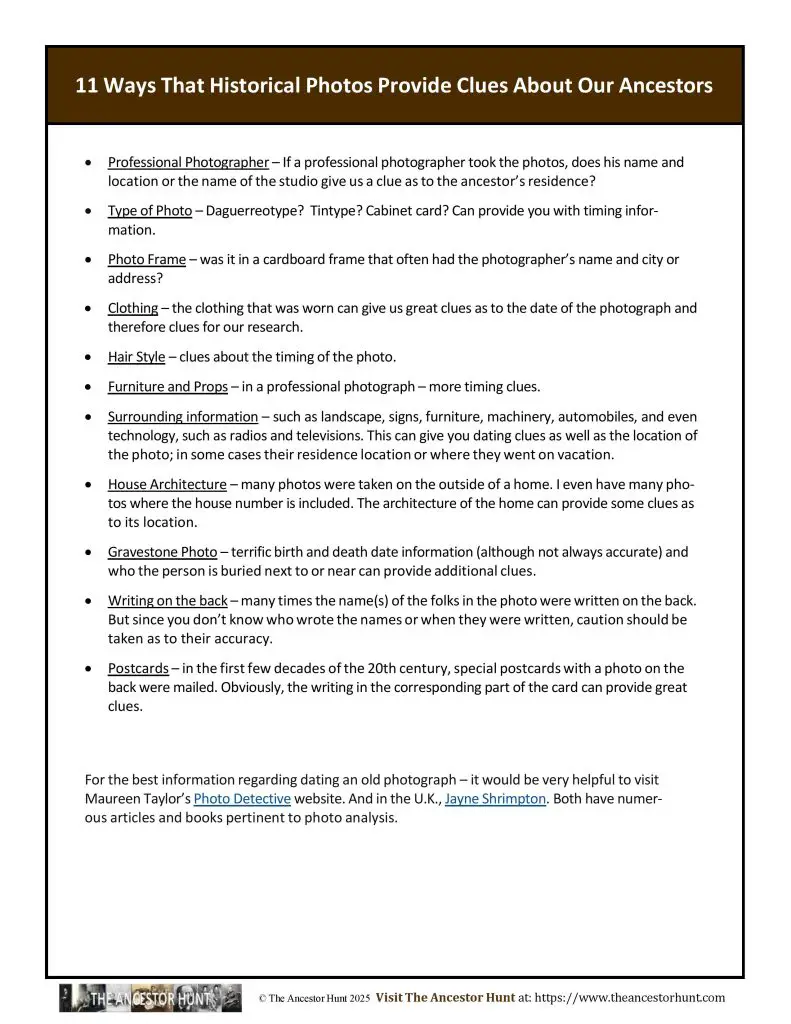 The PDF below provides a list of some of the many ways that a photograph can provide us with important and useful information about our ancestors.