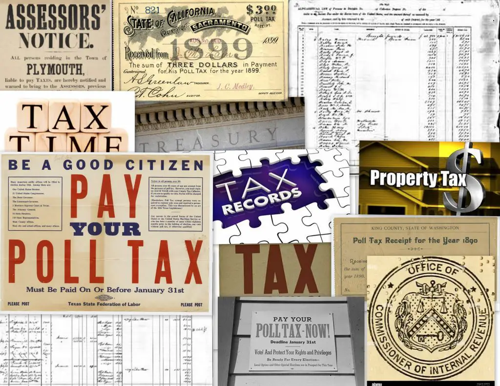 Another type of genealogy record that provides tremendous value is tax records. Like city directories and voting registers, for example, they provide information for us between federal censuses. They also can go back to colonial times.Below is a list that contains the different types of taxes since colonial times in the U.S., and the type of genealogical information that is available in these records.
