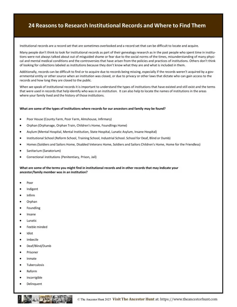 To obtain the two-page Quicksheet pdf for easy reference of what information you can find and where to look for Instututional Records, you can download it by clicking on the Download button below: