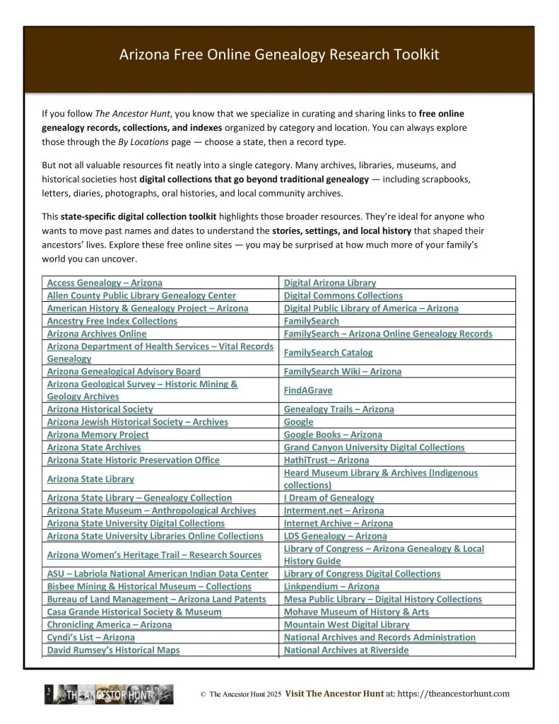 The Ancestor Hunt regularly adds and updates new collection links, as well as searches for and fixes broken links.