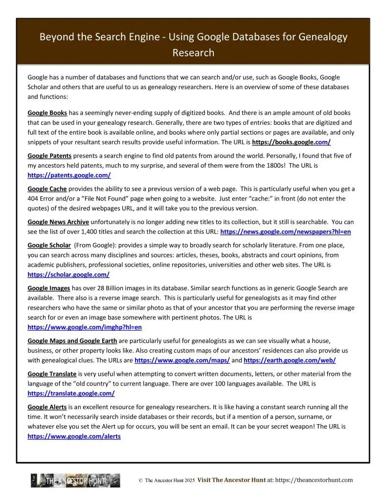 - Beyond the Search Engine: Using Google Databases for Genealogy Research
