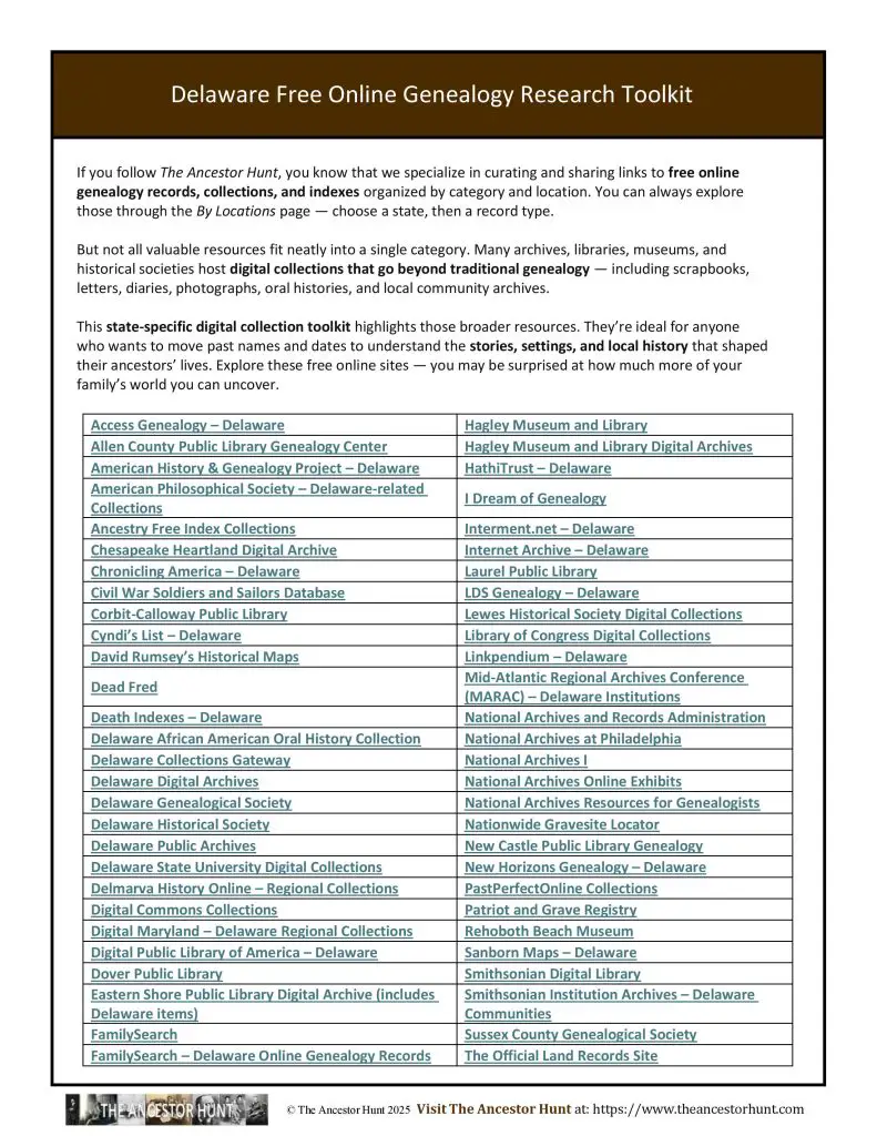 The Ancestor Hunt regularly adds and updates new collection links, as well as searches for and fixes broken links.