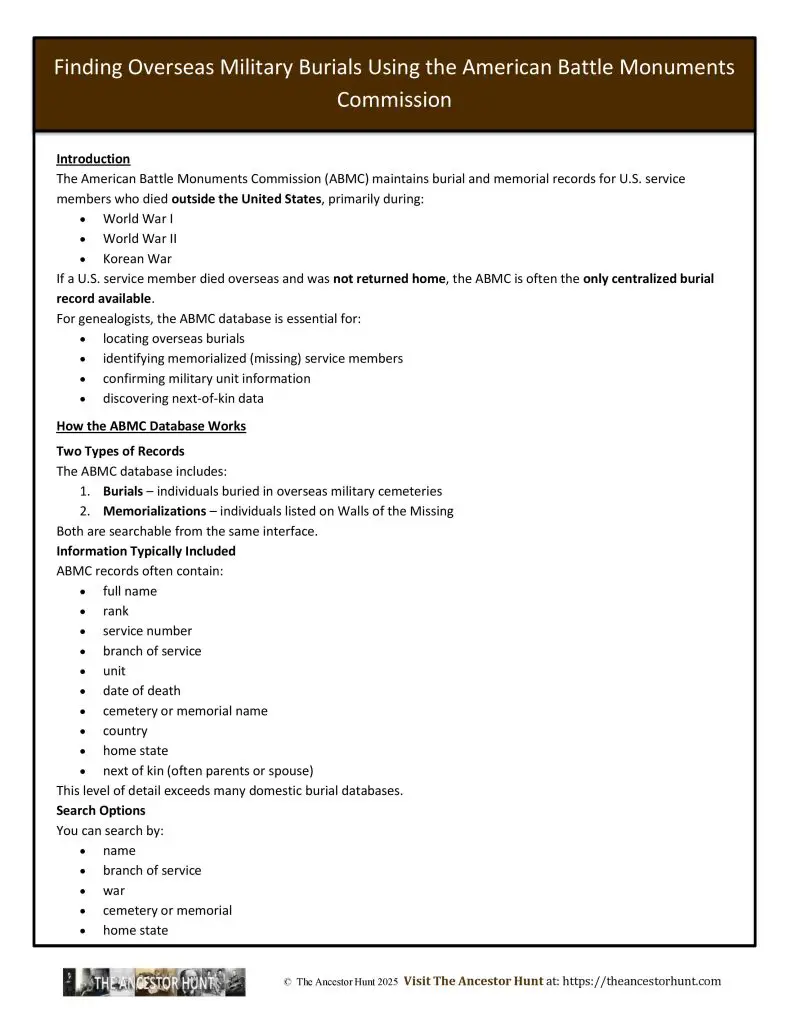 If a U.S. service member died overseas and was not returned home, the ABMC is often the only centralized burial record available.
