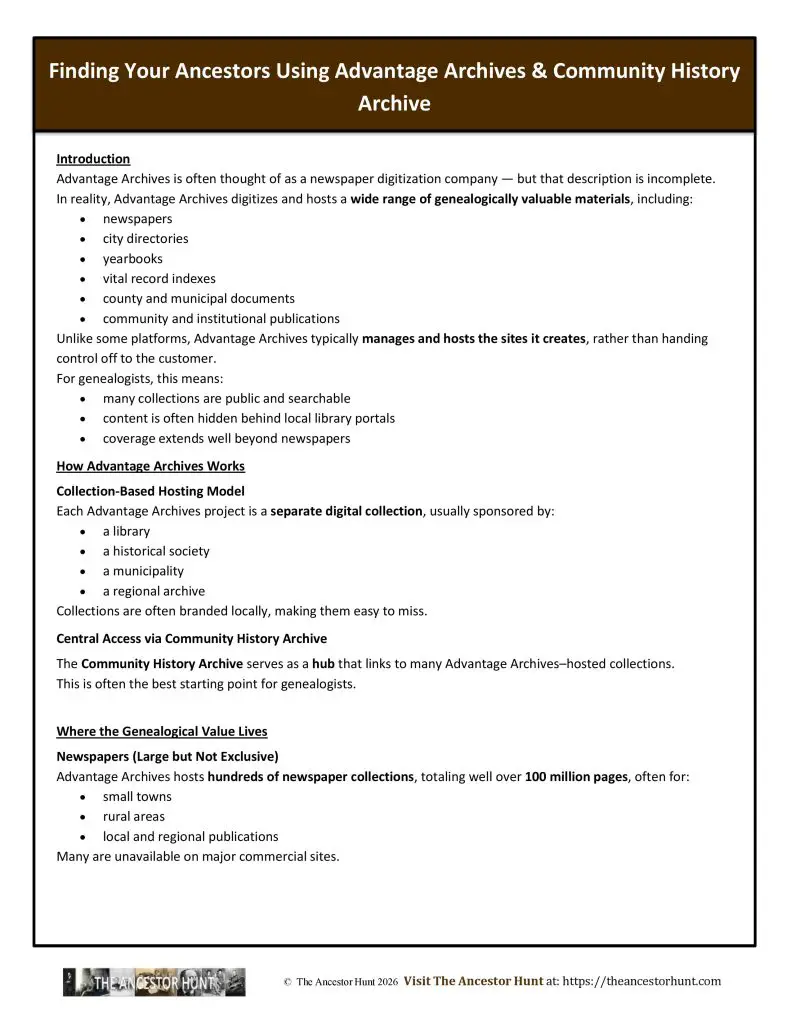 In reality, Advantage Archives digitizes and hosts a wide range of genealogically valuable materials, including:
