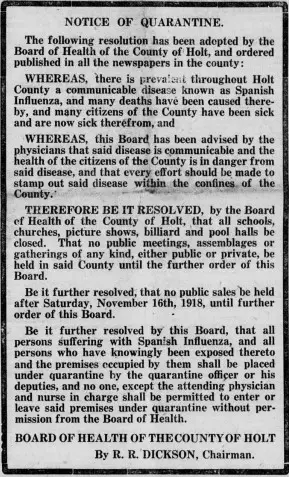 • Sections titled “Health Department Notices,” “Quarantine,” or “Public Health Warnings”