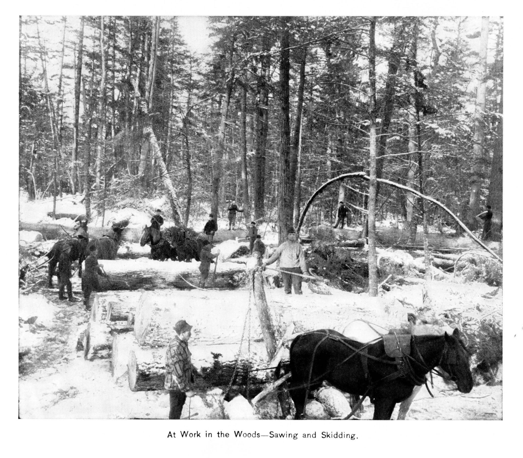- Hauling crews moved logs by sled, wagon, or rail spur.