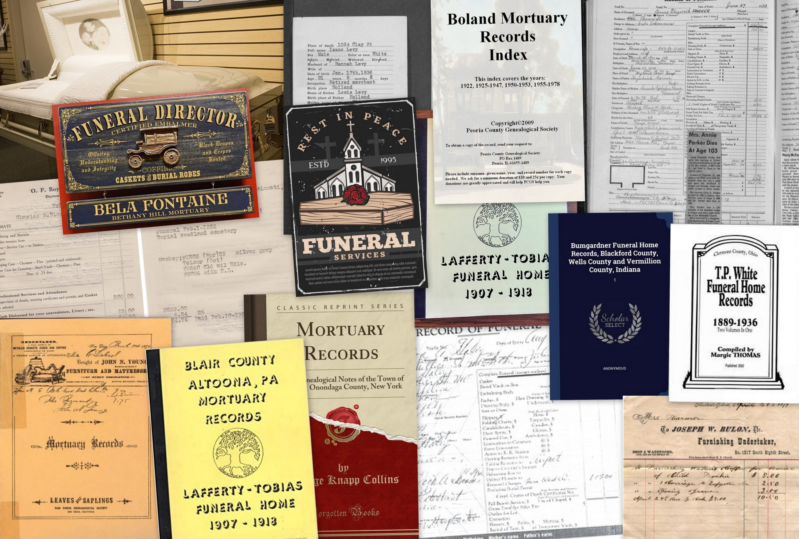 Mortuary and funeral records document the handling, preparation, and burial of the deceased. These records can provide details about death, family members, residence, and community connections.