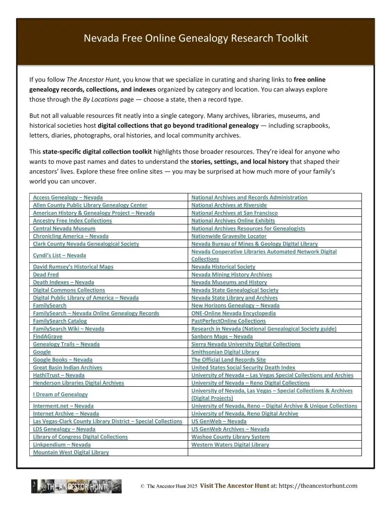 The Ancestor Hunt regularly adds and updates new collection links, as well as searches for and fixes broken links.