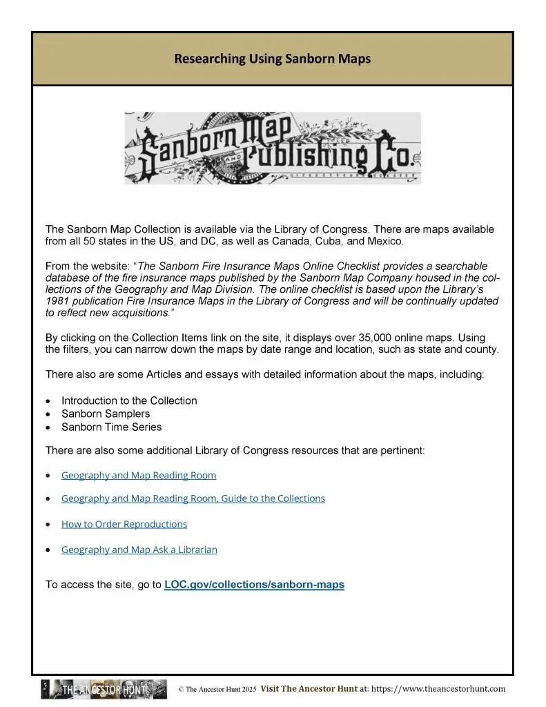 From the website: “The Sanborn Fire Insurance Maps Online Checklist provides a searchable database of the fire insurance maps published by the Sanborn Map Company housed in the collections of the Geography and Map Division. The online checklist is based upon the Library’s 1981 publication Fire Insurance Maps in the Library of Congress and will be continually updated to reflect new acquisitions.”