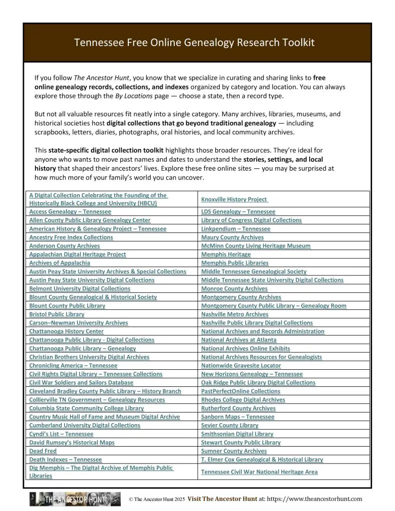 The Ancestor Hunt regularly adds and updates new collection links, as well as searches for and fixes broken links.