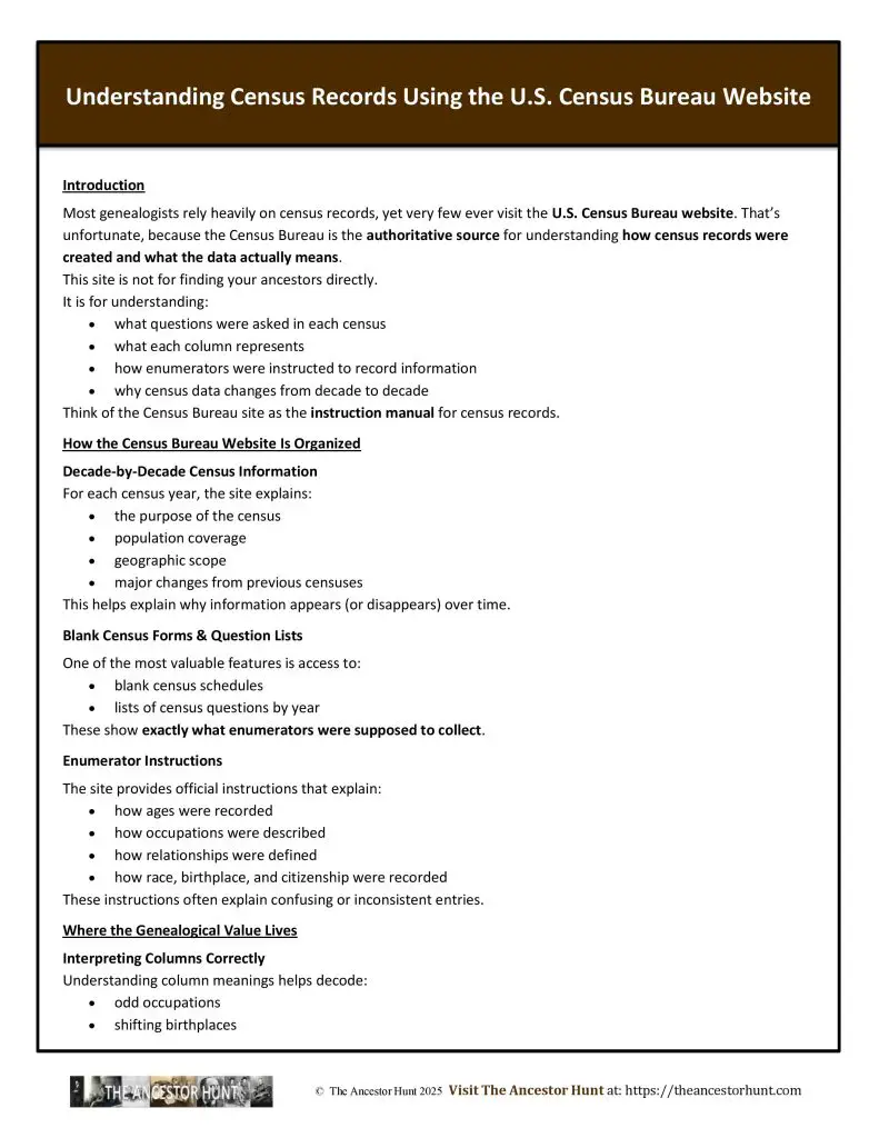 Most genealogists rely heavily on census records, yet very few ever visit the U.S. Census Bureau website. That’s unfortunate, because the Census Bureau is the authoritative source for understanding how census records were created and what the data actually means.