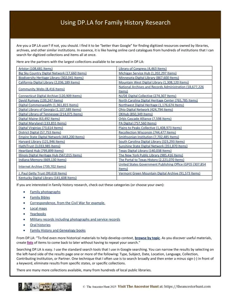 The Ancestor Hunt regularly adds and updates new collection links, as well as searches for and fixes broken links.